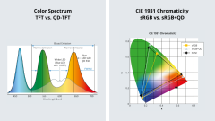 Helligkeit und Energieeffizienz: Durch Quantenpunkte steigert sich auch die Helligkeit des Displays. Verglichen mit einem Display ohne QD kann daher der Stromverbrauch reduziert werden, um die gleiche Helligkeit zu erhalten. Bei LC-Displays erzielt man ein noch deutlich besseres Ergebnis mit einer Kombination aus QD-Technologie und einem Micro-LED-Backlight. Ein so ausgestattetes Display verfügt über eine brillante Farbdarstellung, einen hohen Kontrast und ist zudem noch energieeffizient.
