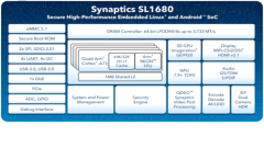 The GRINN SOM-1680 is powered by a Quad-Core Cortex-A73, a PowerVR Series9XE GE9920 GPU, and an integrated NPU accelerator, delivering impressive computing and graphics performance. With 4GB LPDDR4 and 16GB eMMC, the module supports advanced video input/output and is ideal for smart cameras, industrial automation, and IoT devices. For seamless connectivity, it offers USB 3.0, PCIe, and Gigabit Ethernet. The software SDK is available via the SYNAPTICS GitHub platform.